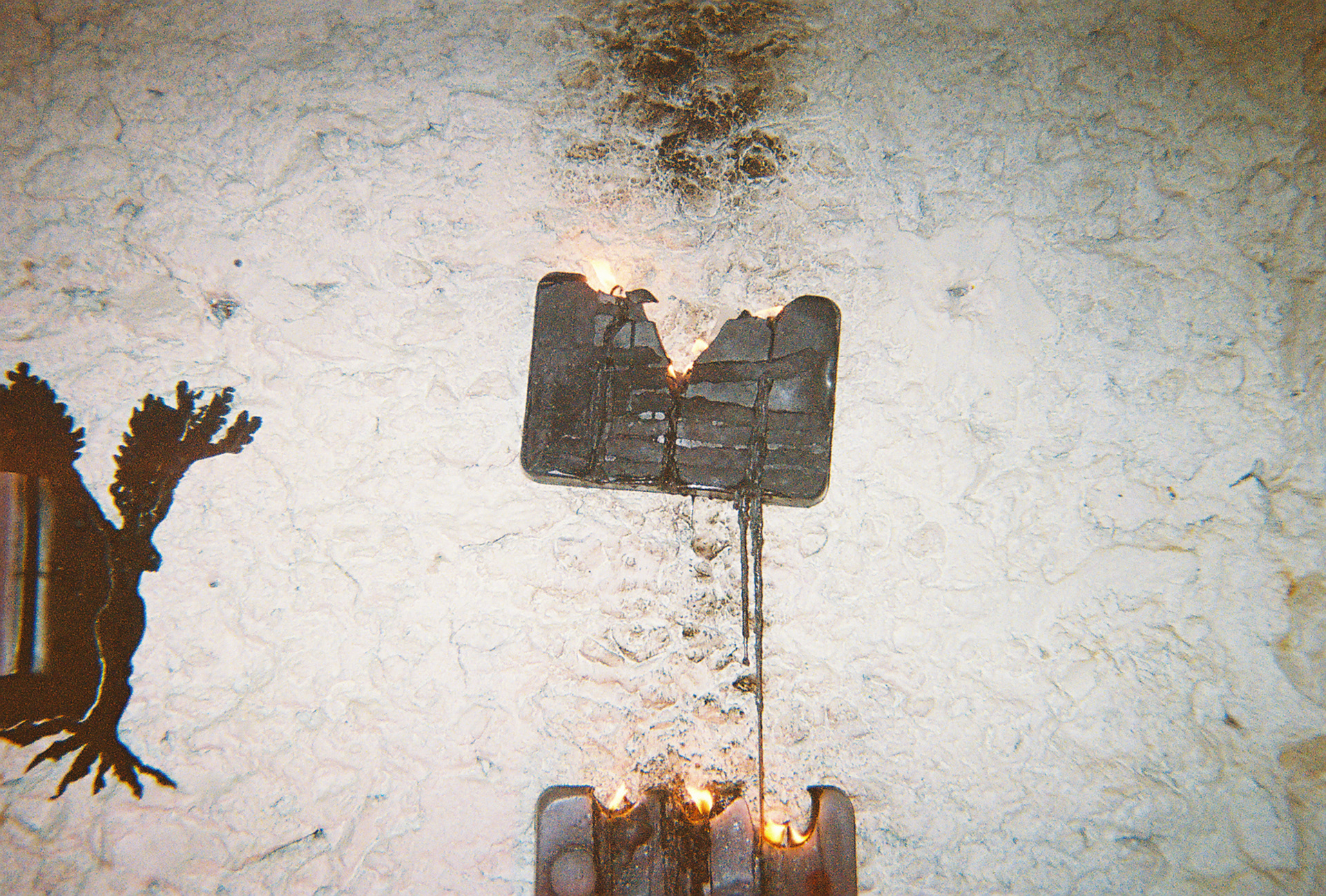 Snapshots from solo show on May 30th at Afterhours.zone in Paris: "For this solo show, Carl extends their conceptual exploration to the profound themes of grief and love. Their art becomes a conduit for transformation, examining the materiality of death and the translation of time into material objects through candle-clocks. In honour of two recently deceased loved ones, they create a new measurement of time that also serves as "Opferkerzen" (the candles we light for the dead). Carl's work challenges conventional notions of existence and consciousness, inviting viewers to confront the paradoxical nature of life and death. Their immersive installations, featuring time-counting giant candles framed by water-like steel with burnt edges in the shape of mythological creatures and stabbing horns as time markers, promise a journey into the historical complexities of the human psyche and its inevitable collapse."