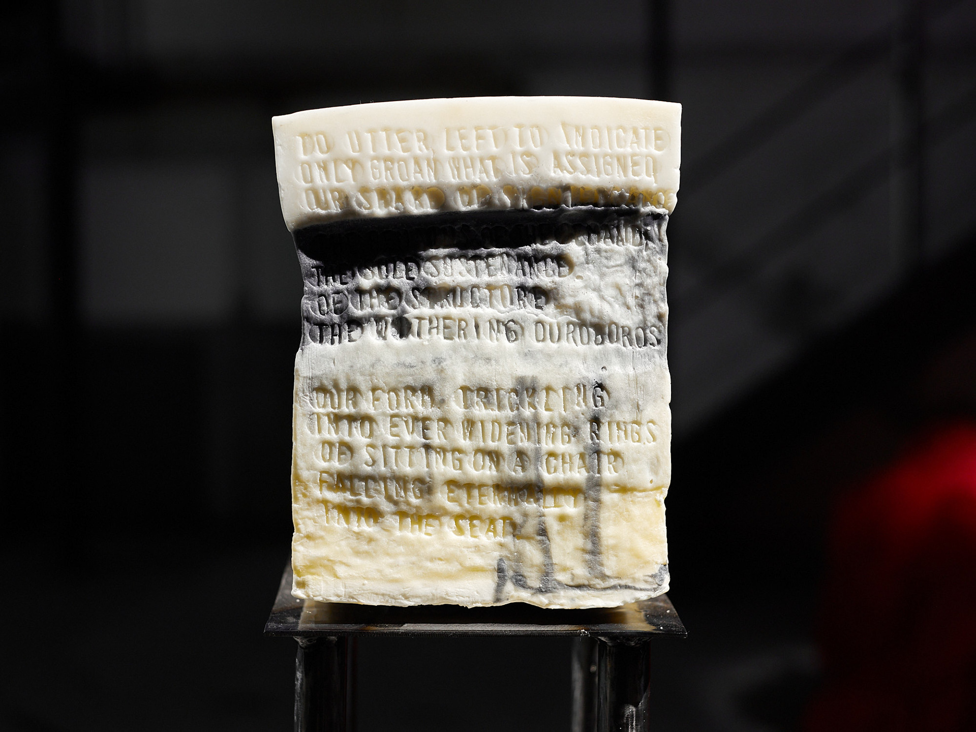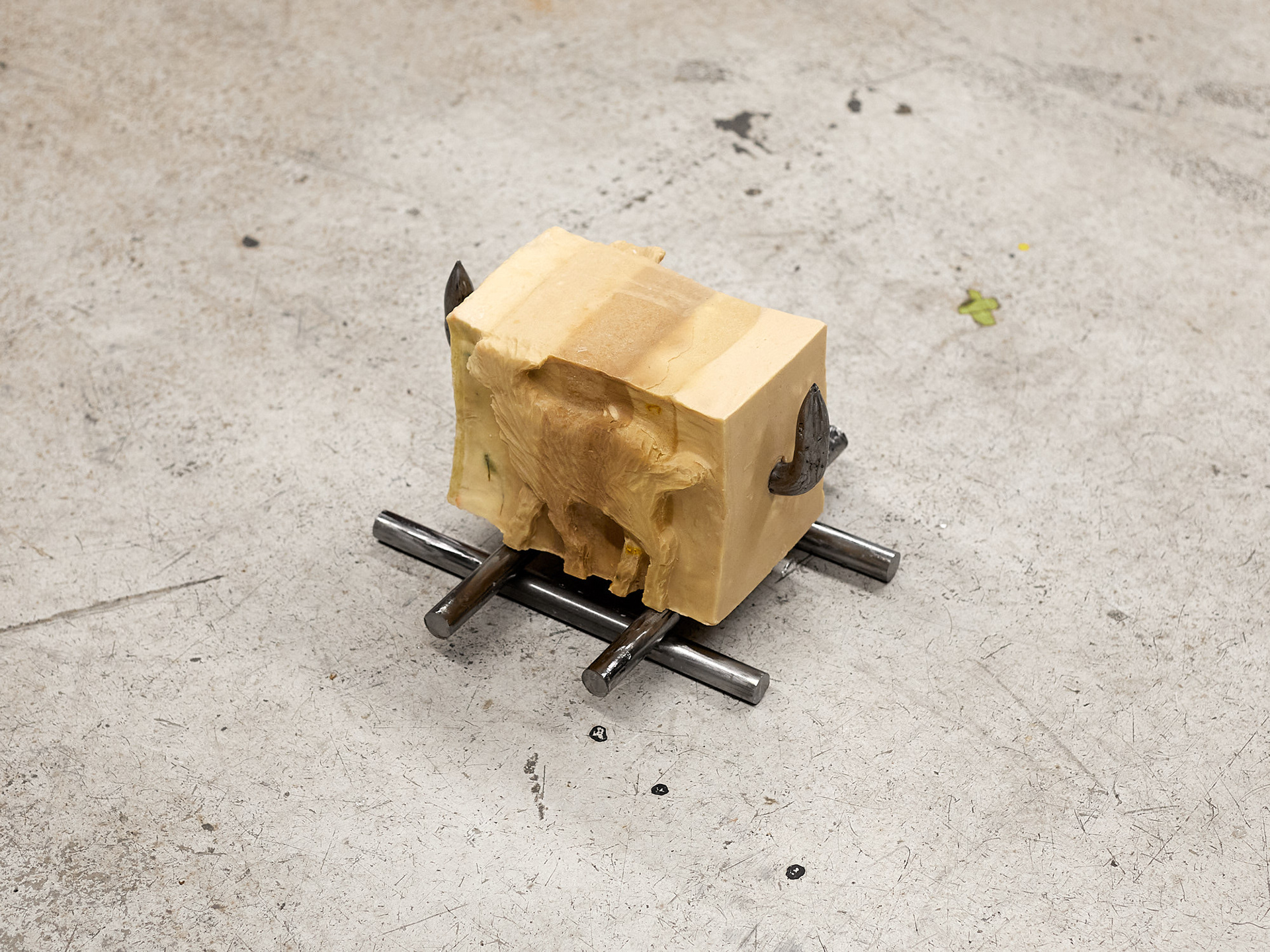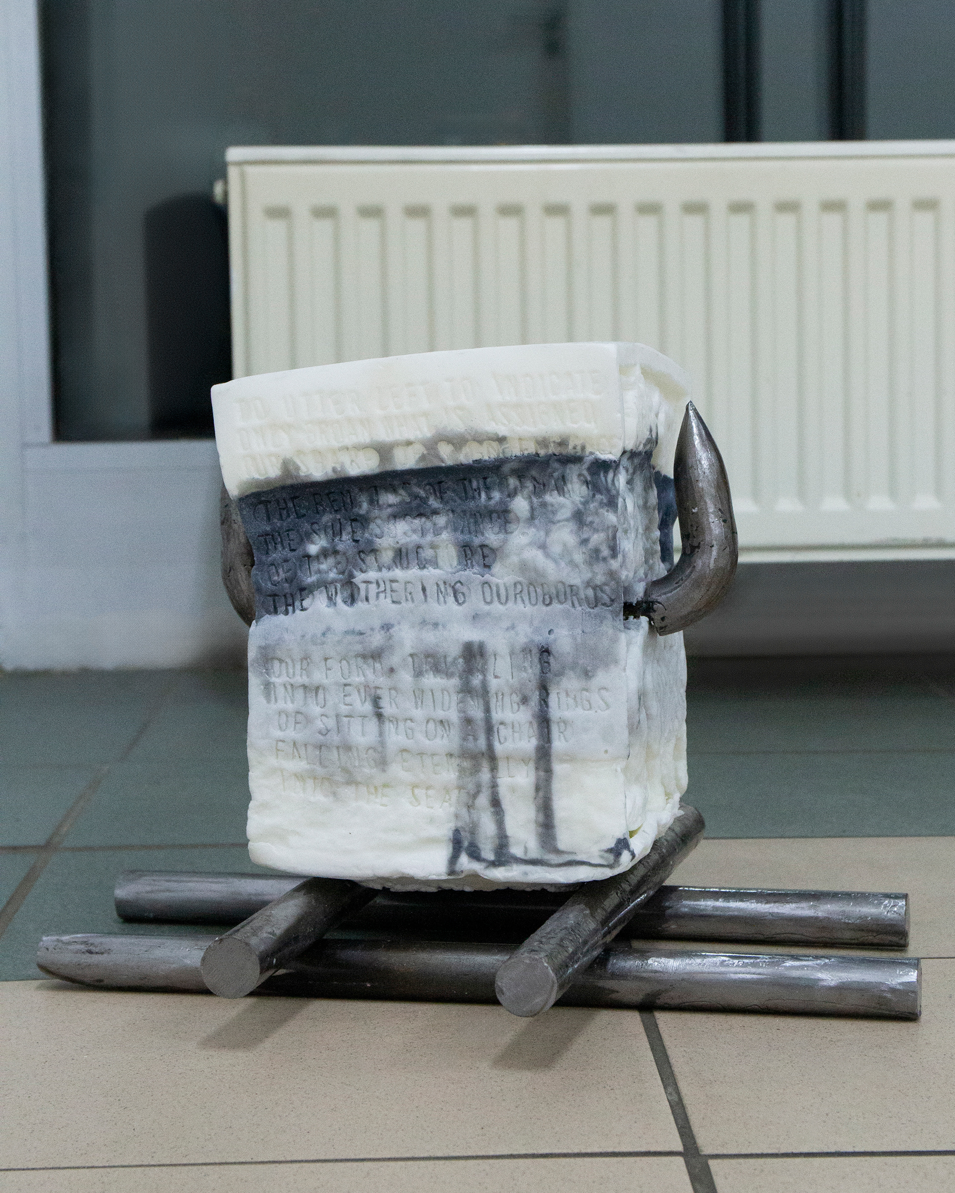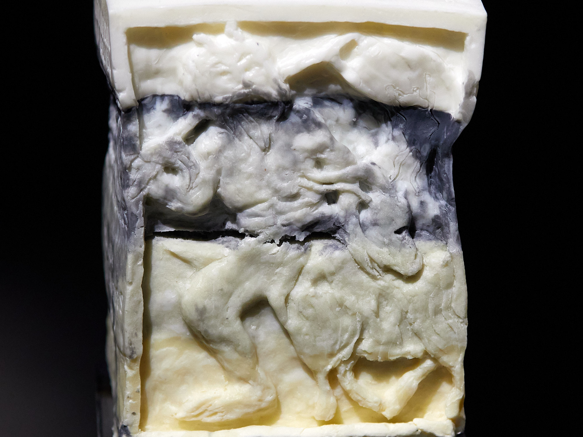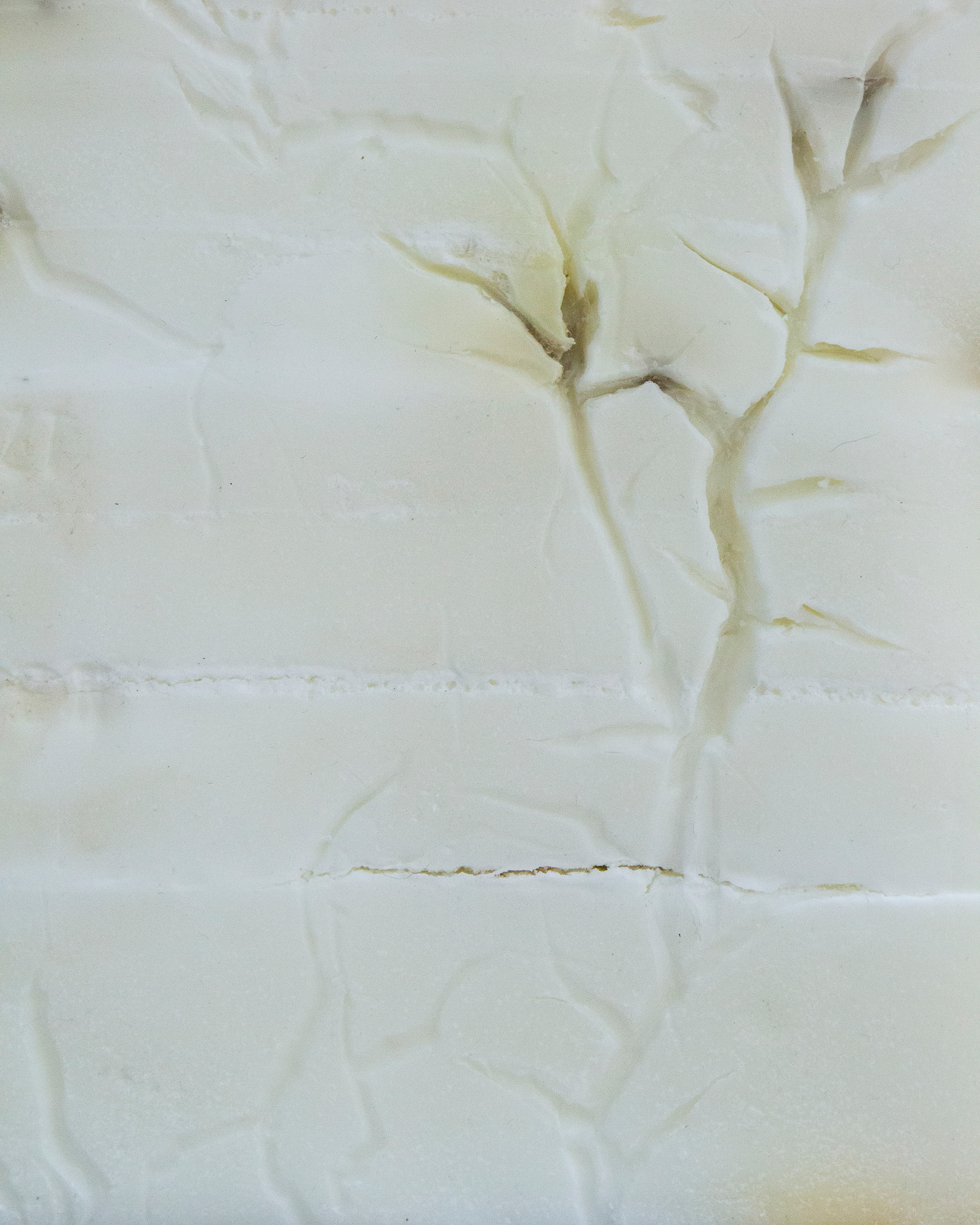 By inscribing poetry and mythological imagery into the surface of the sculptures, the artist materializes cycles of guilt, memory, and survival. Representative of Rosalind Kraus’ Formlessness, the material degradation of the soap becomes an act of resistance against rigid systems, mirroring the instability of power structures that seek to define purity and impurity. The scapegoat soaps are the personification of Julia Kristeva’s Abject, evoking both repulsion and an uncanny attraction.