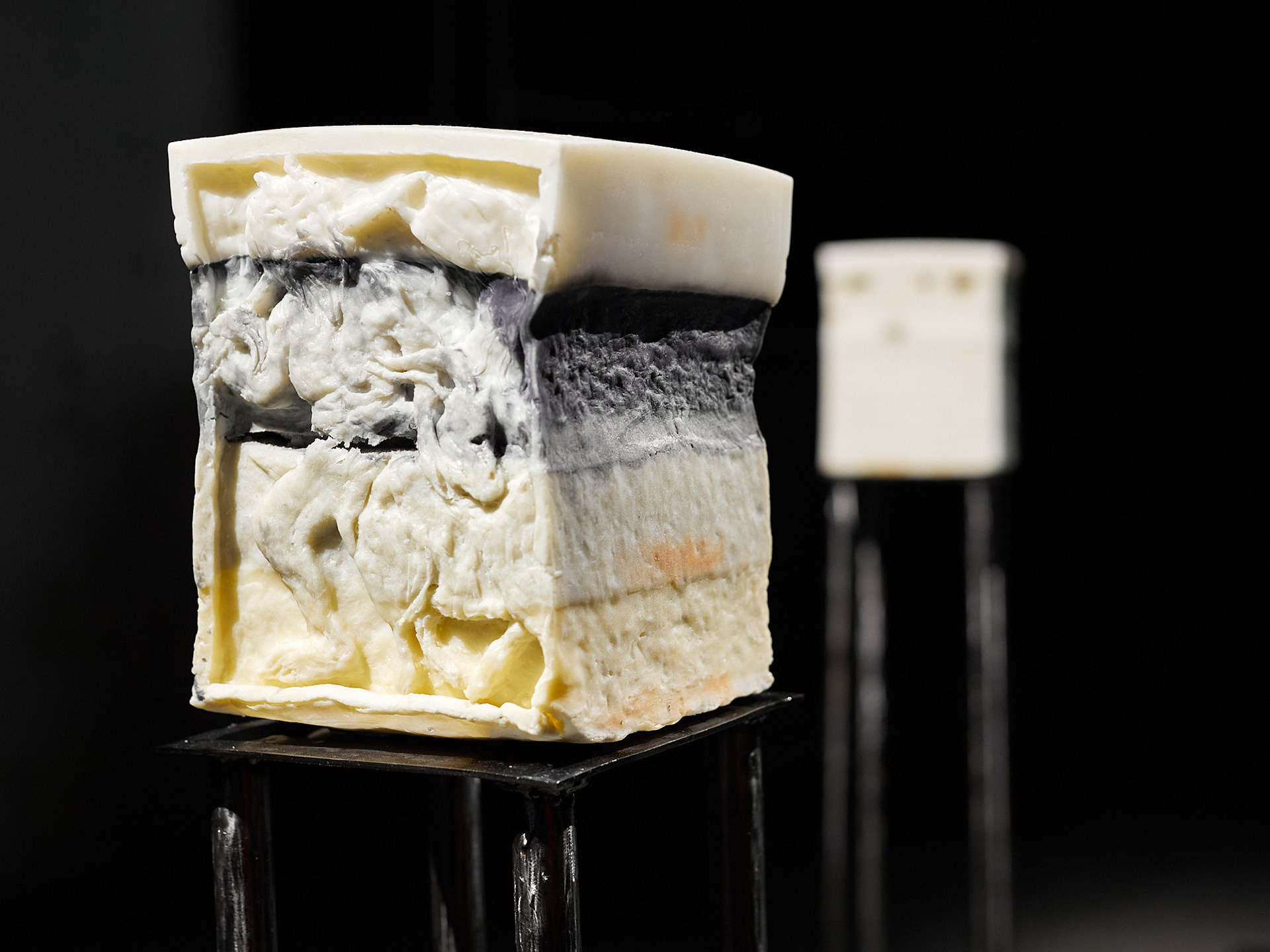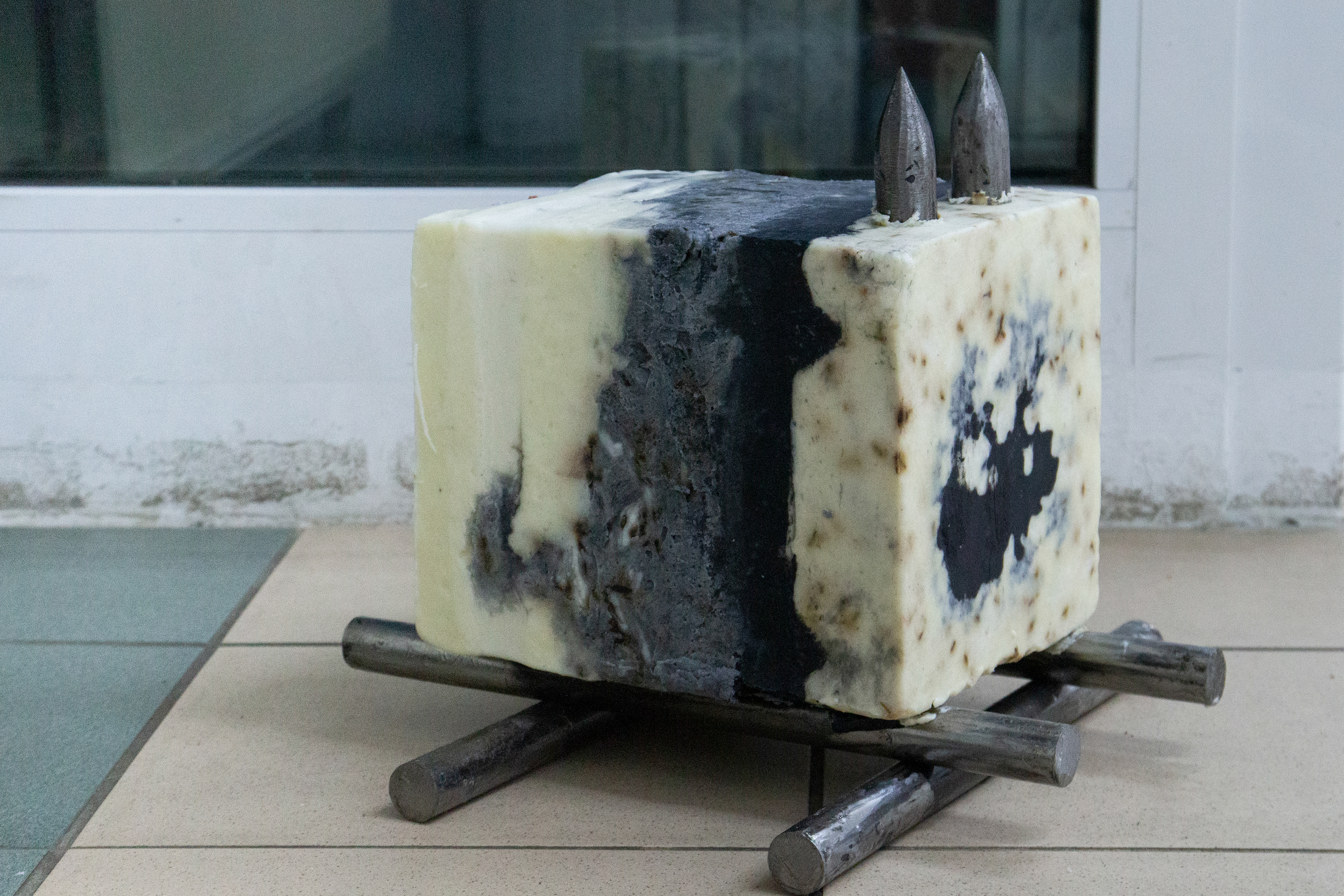 Through large-scale sculptural forms, the artist uses soap as both a literal and symbolic medium—once a tool for cleansing, now eroded by time, decomposition, and human touch. Infused with natural elements like charcoal, herbs, and blood, the soap embodies the paradox of purification and decay. The process disrupts traditional soap-making by reversing chemical reactions, resisting permanence, and embracing entropy. As the material breaks down, it echoes the fragility of imposed moral structures and the transience of absolution. The work is deeply informed by personal loss and societal scapegoating mechanisms.