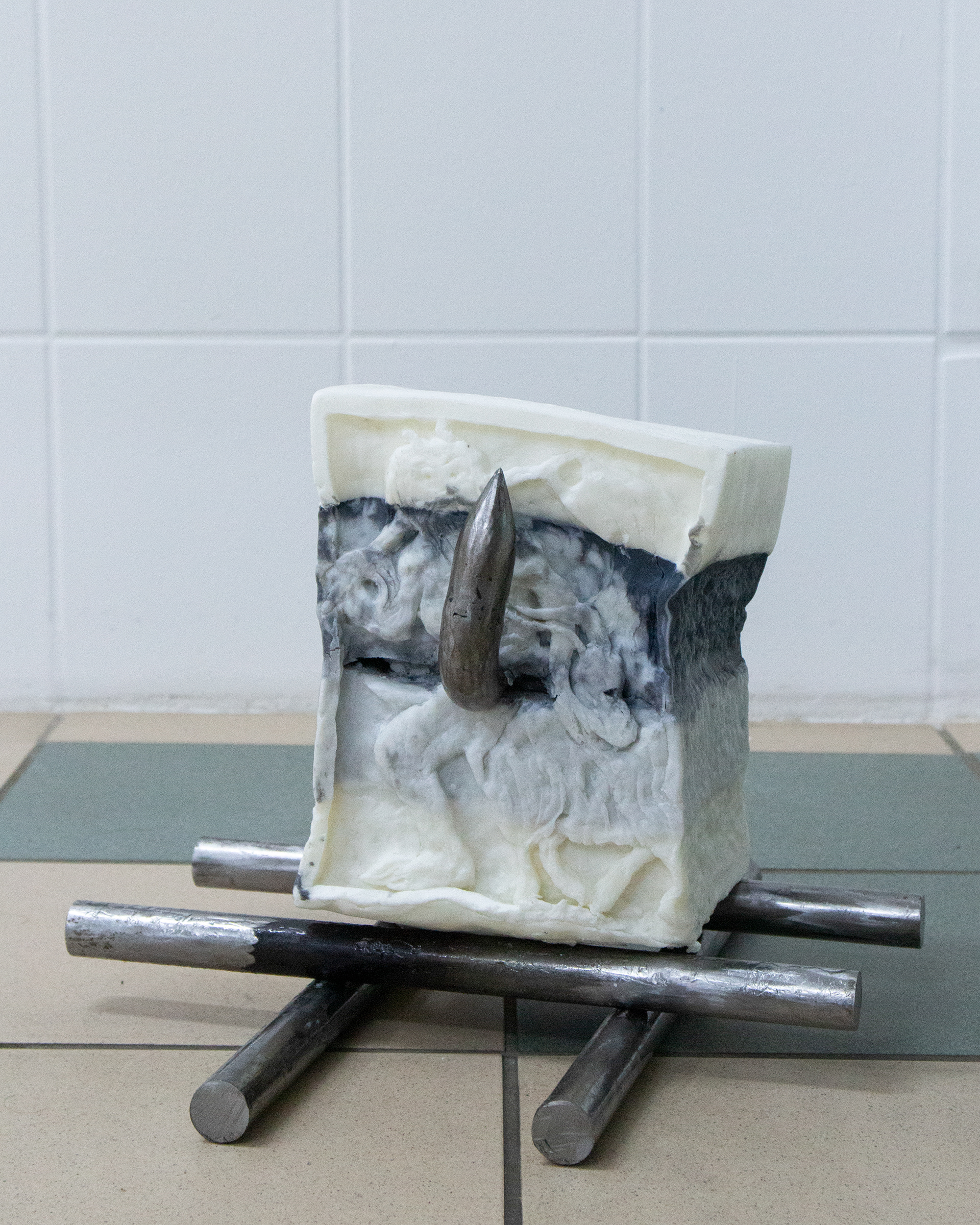 To Sin and Impurity After Salutary Unity explores the cyclical nature of violence, purification, and redemption through the material transformation of soap. Rooted in the myth of the scapegoat, biblical sacrifice, and Jungian archetypes, the work challenges inherited narratives of guilt and atonement. Inspired by the ancient ritual of animal sacrifice, like f.e. the ones described in the Bible (Book of Leviticus), where one goat was sacrificed and another sent into the wilderness carrying collective sins, the installation reinterprets these themes in a contemporary context.